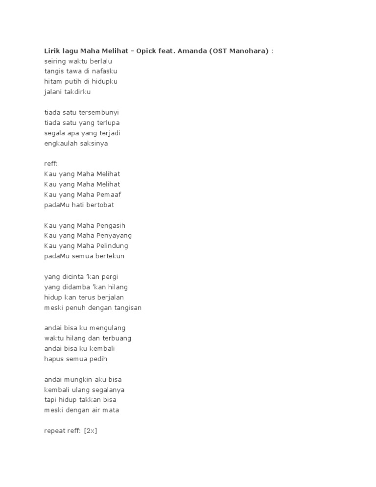 Maha Melihat By Opick Feat Amanda With Lyric S Youtube